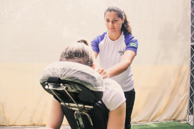 A quick massage também é uma excelente opção para eventos corporativos, feiras e espaços públicos.